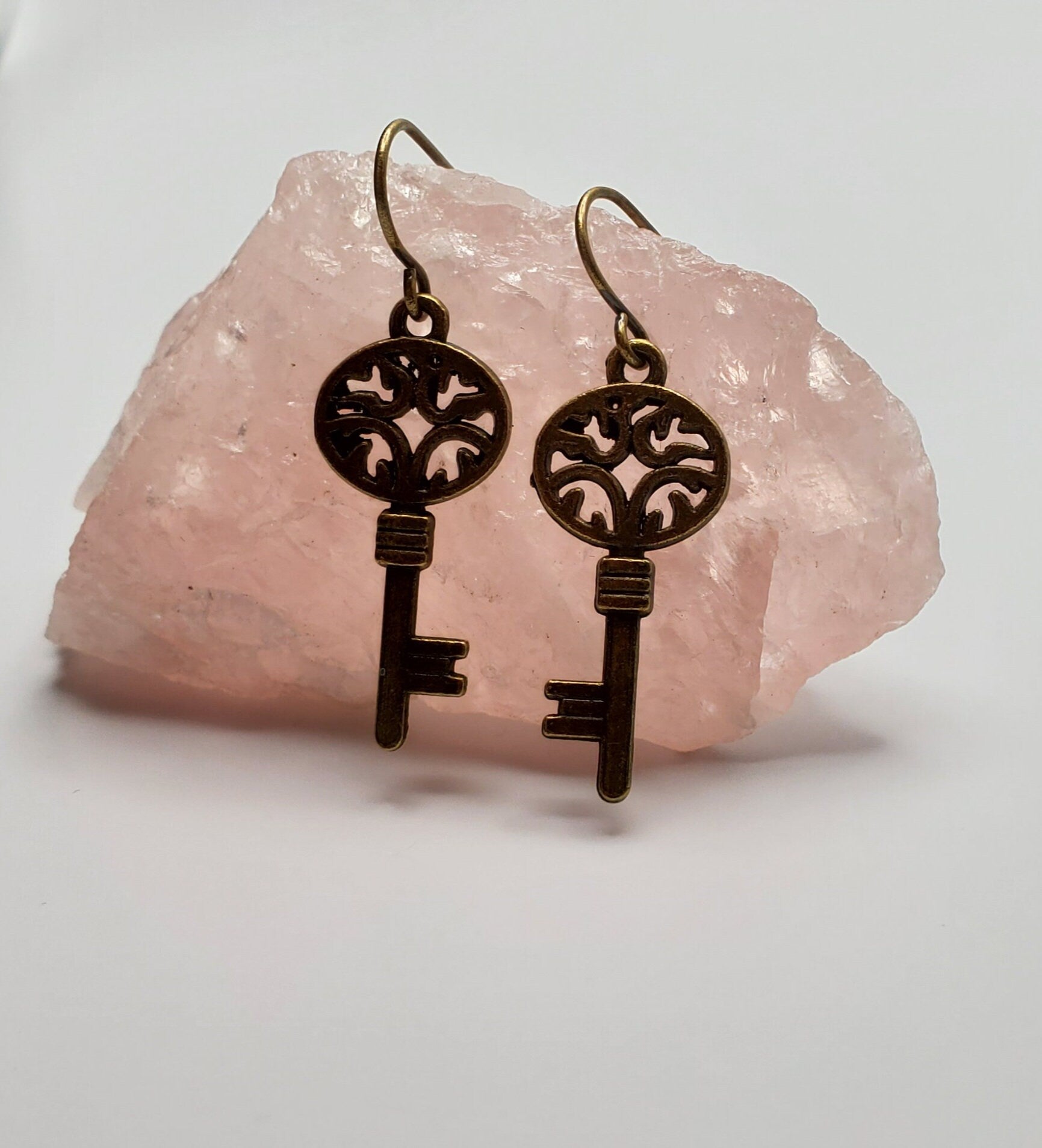 Filigree Key Earrings | Small | Antiqued Bronze