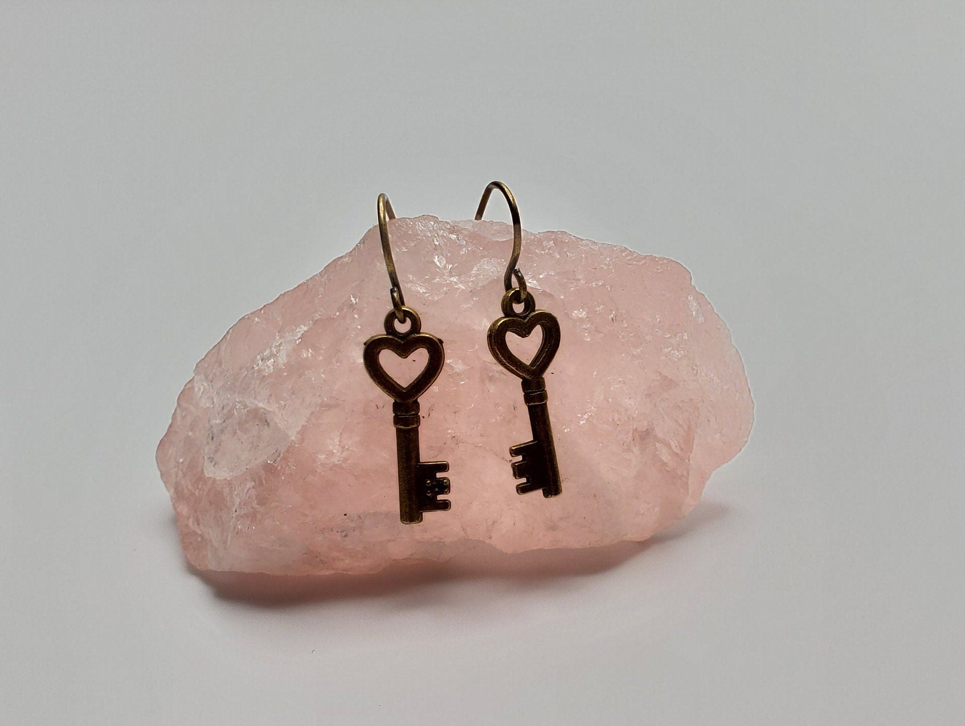 Heart Shaped Key Earrings | Small | Antiqued Bronze
