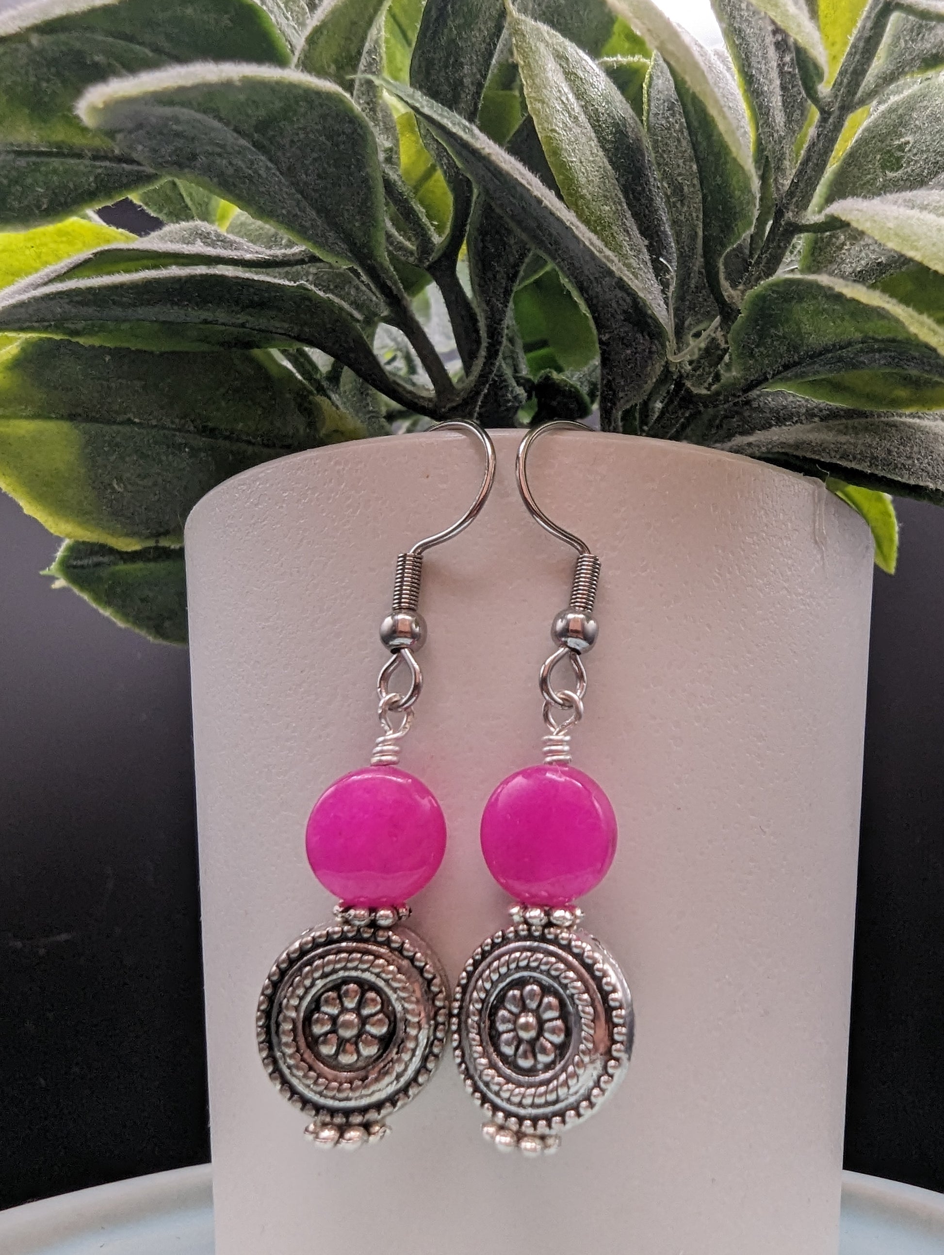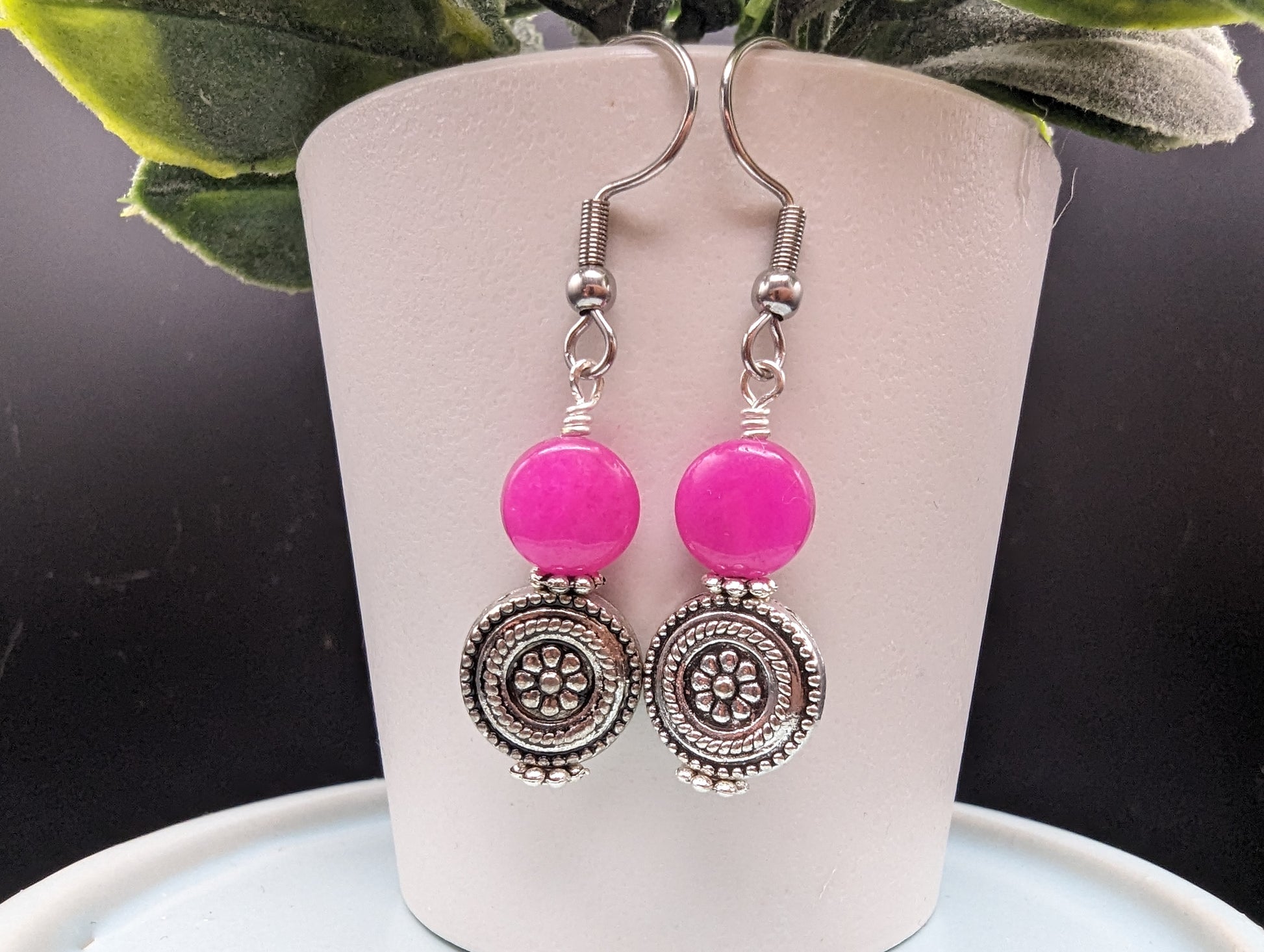 Hot Pink & Silver Dangle Earrings | Stainless Steel