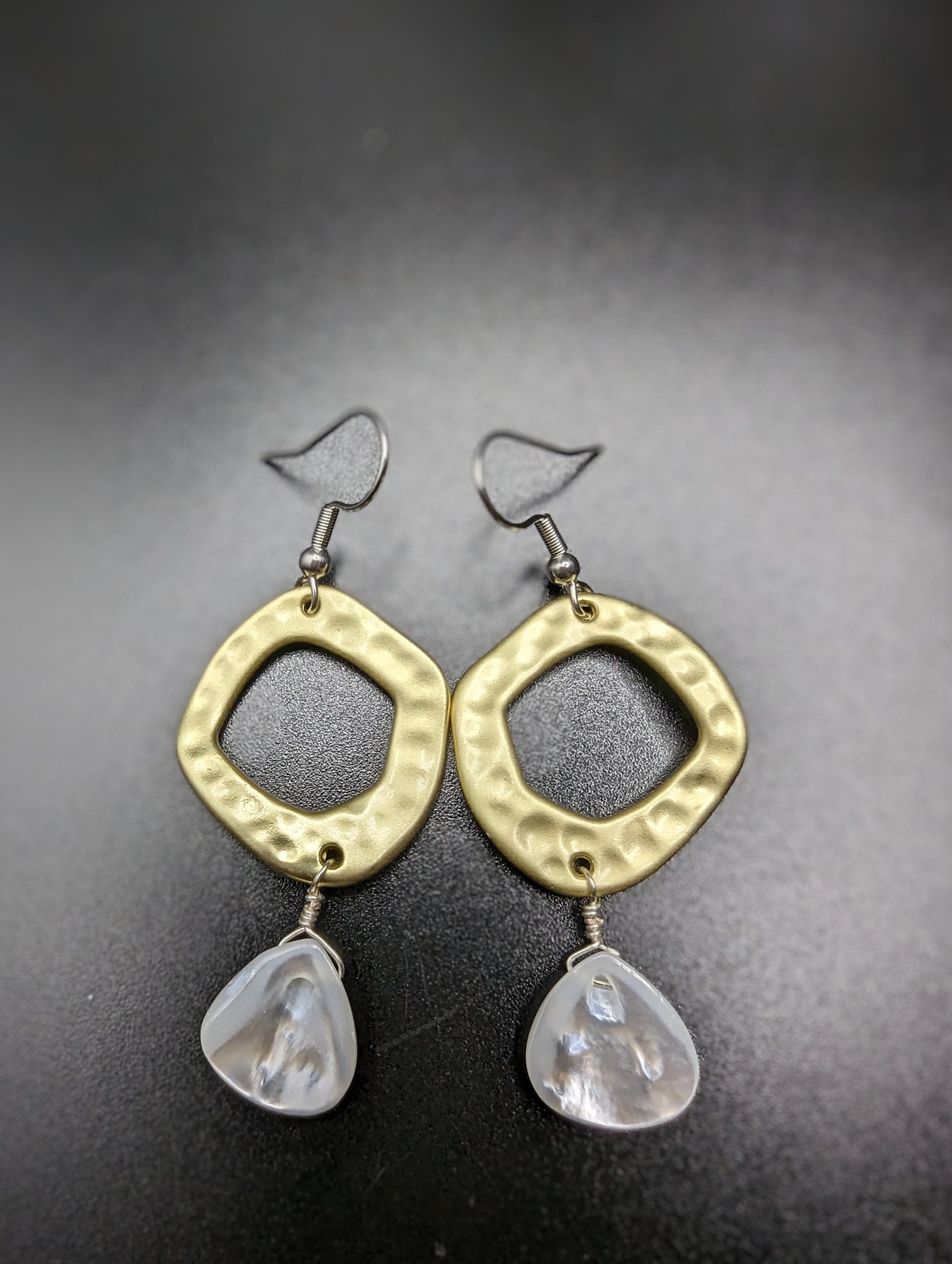 Mother of Pearl Tear Drop and Gold Tone Earrings with stainless steel ear hooks.