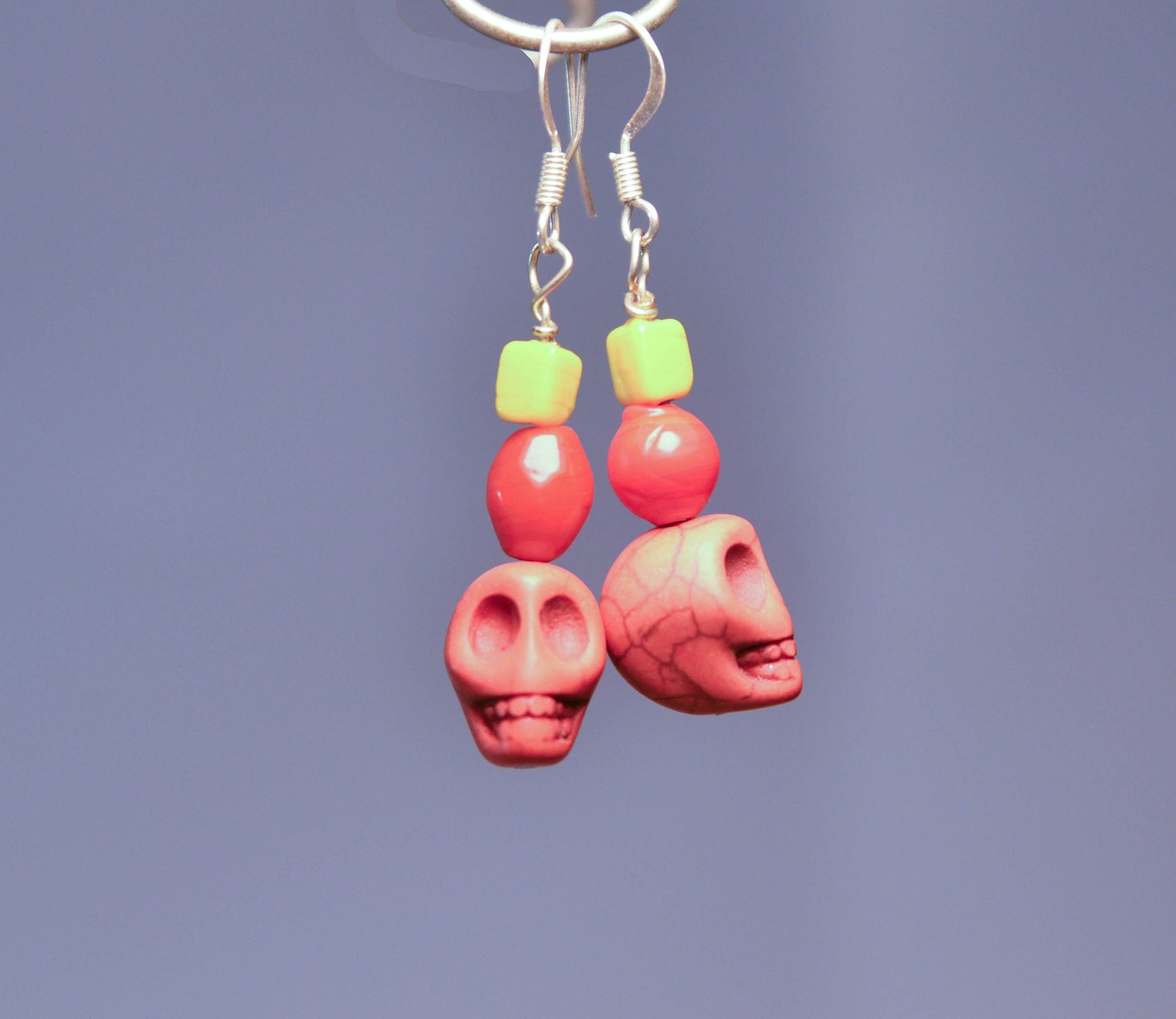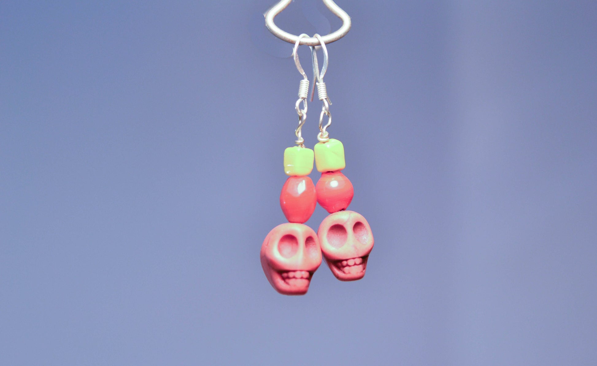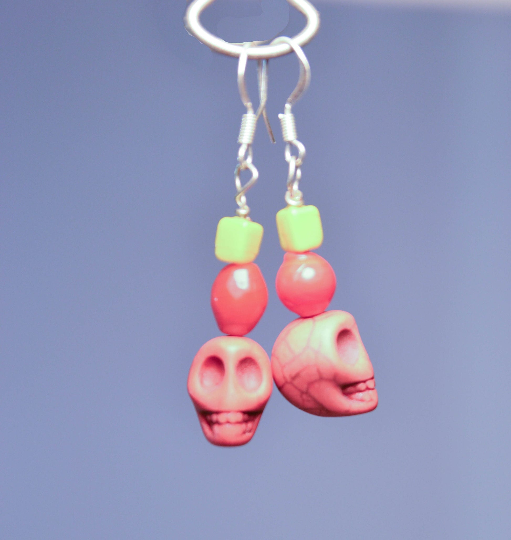 I always loved the skull beads but didn't like the way they looked on bracelets. As a result, I came up with my skull series. All of my skull earrings are different in some way, may that be design, color, or structure.