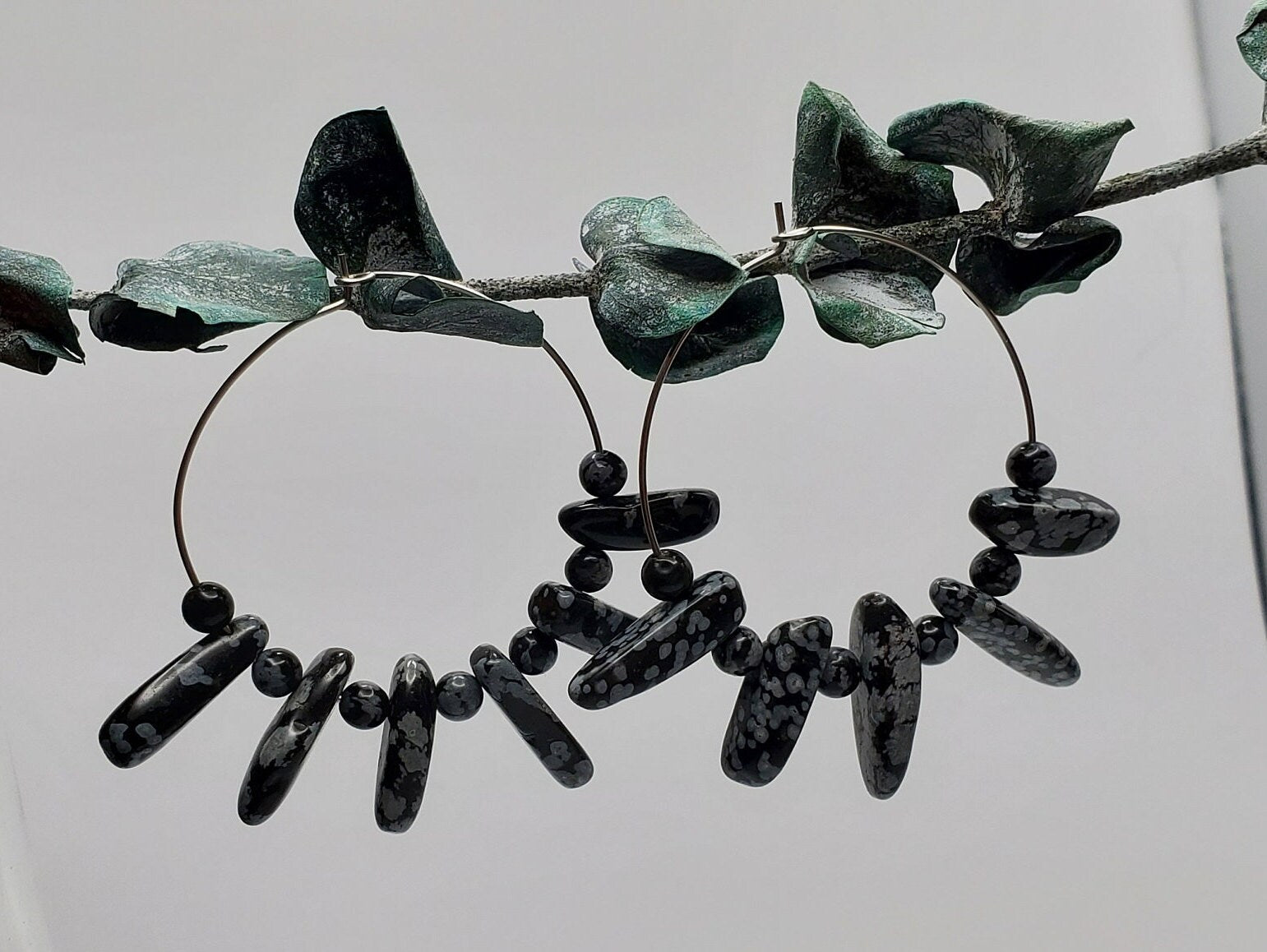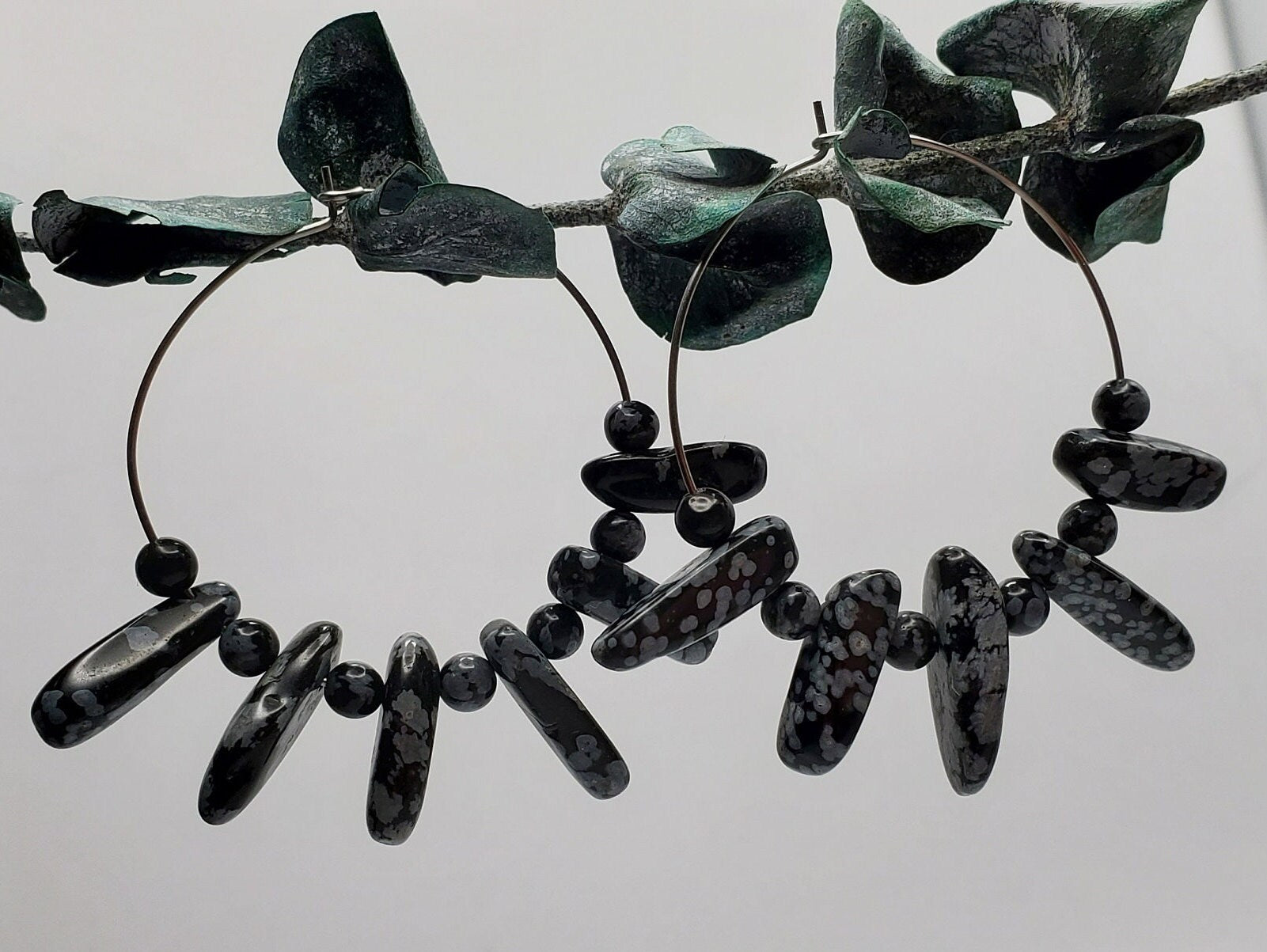 Snowflake Obsidian Hoop Earrings | Stainless Steel