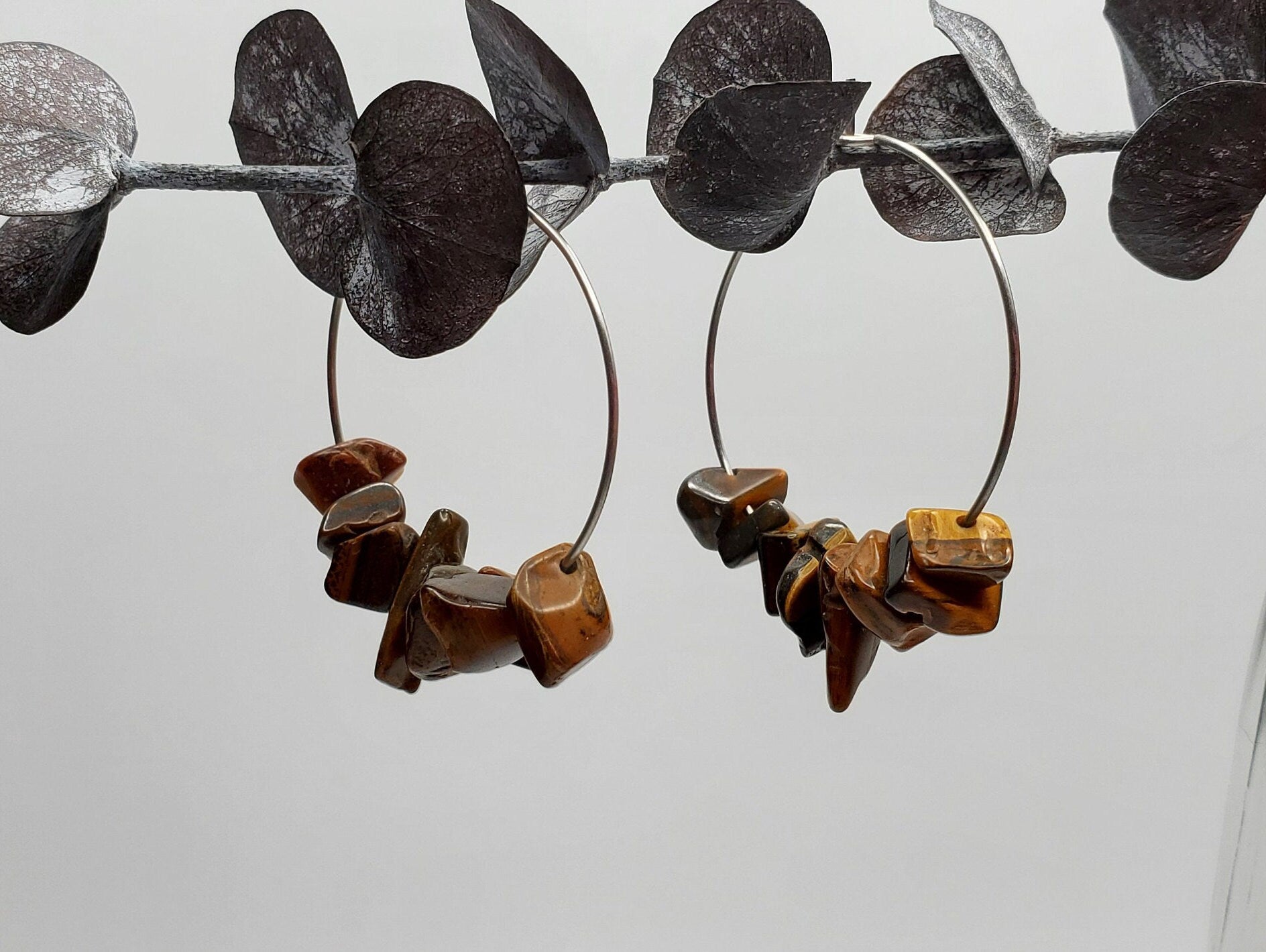Tiger's Eye Hoop Earrings | Stainless Steel